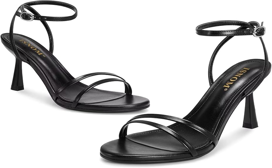 • Heel Height: The heel height is 2.68 inches/6.8 centimeters. womens black sandals with dual strap design, simple yet stylish.
