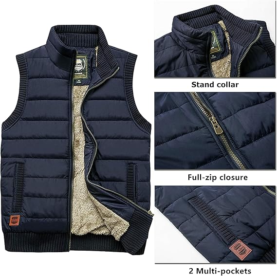 Vcansion Men’s Outdoor Stand Collar Fleece Jacket Vest Casual Padded Vest Coats